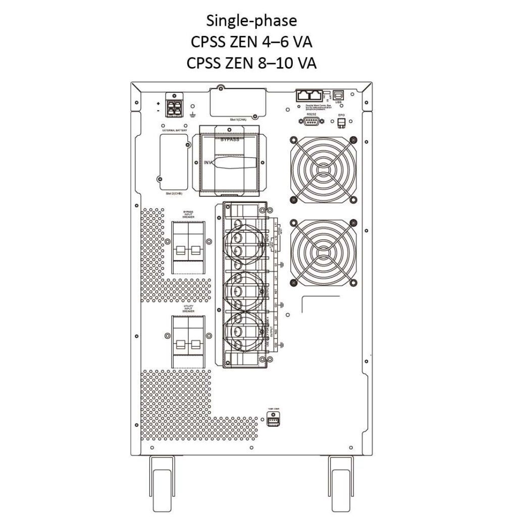 - The CPSS ZEN 4000-10000 VA single-phase CPS allows quick and easy connection due to the oversized terminal block.
