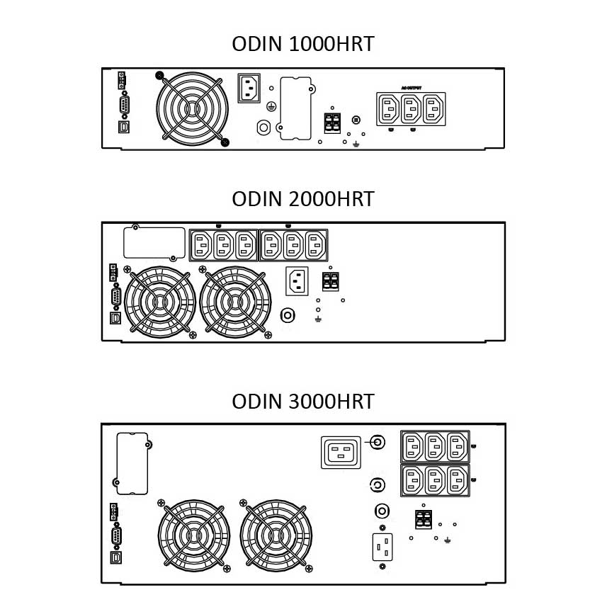 - The ODIN and ODIN HARSH RT 1000-3000 VA UPS single-phase online UPS, thanks to its reduced depth (43 cm) is particularly versatile as they are also suitable for particularly compact racks.